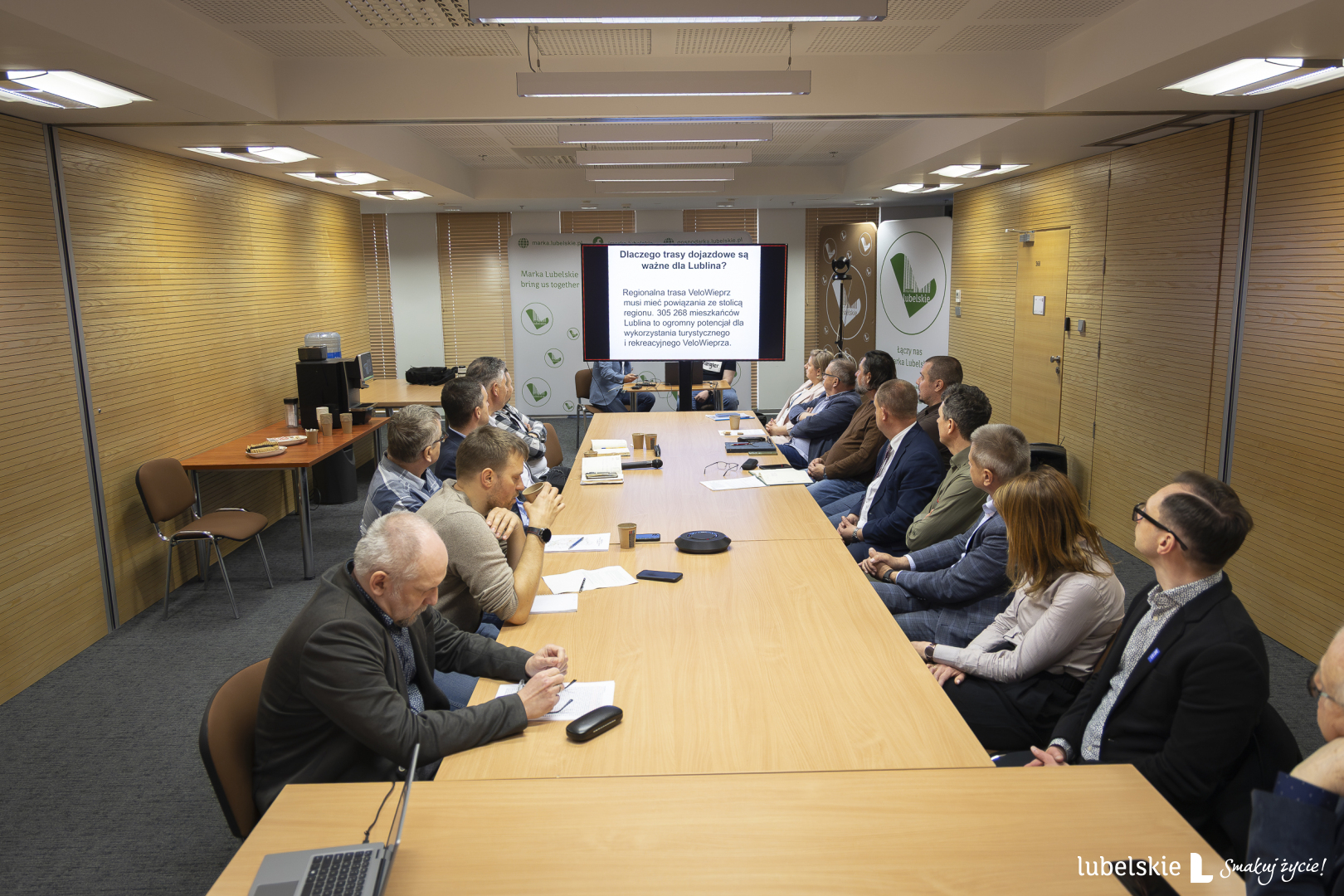 W czwartek 23.04.2026 r. w siedzibie Urzędu Marszałkowskiego Województwa Lubelskiego w Lublinie oraz za pośrednictwem aplikacji Teams odbyły się konsultacje dotyczące propozycji 4 łączników do regionalnej trasy rowerowej VeloWieprz.