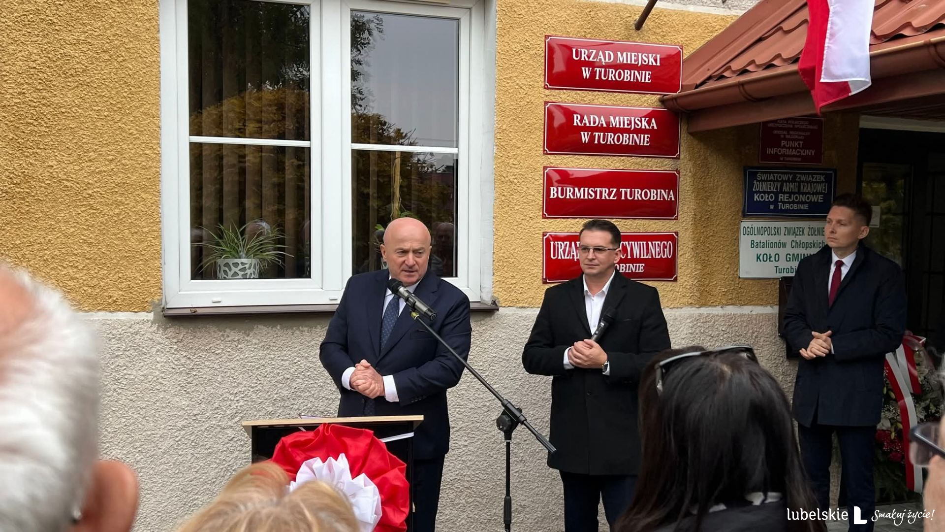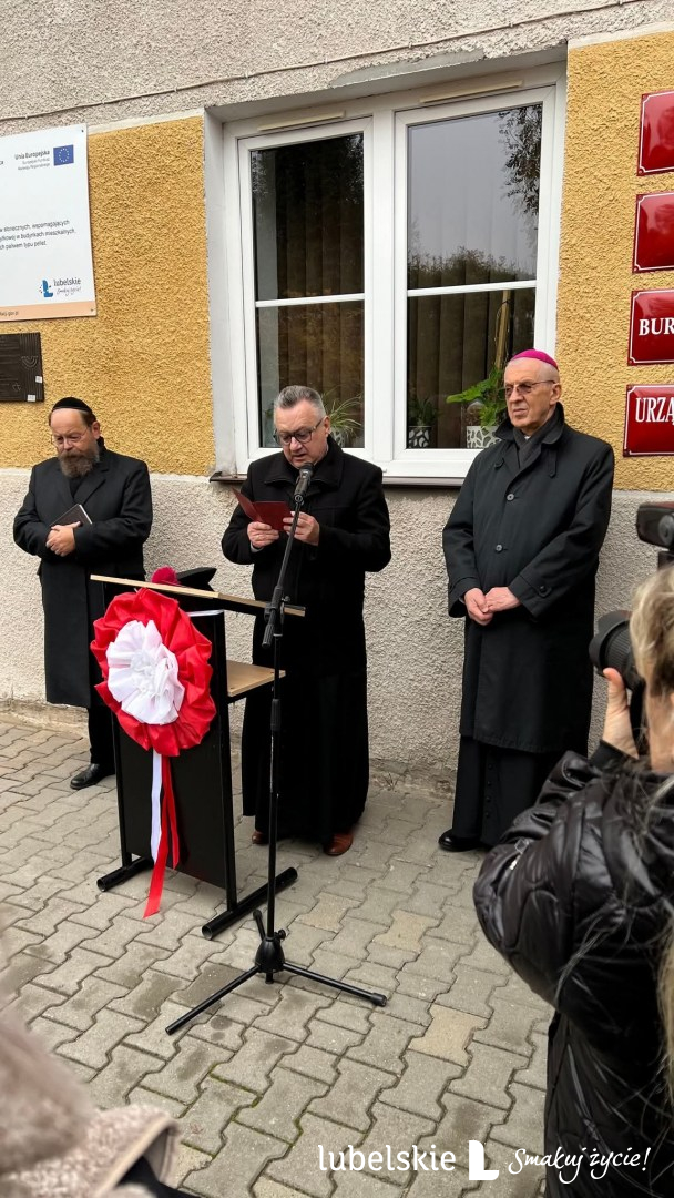 Tablica zawisła na budynku Urzędu Miasta, a uroczystości zorganizowały lokalne władze, w tym Burmistrz Andrzej Kozina.