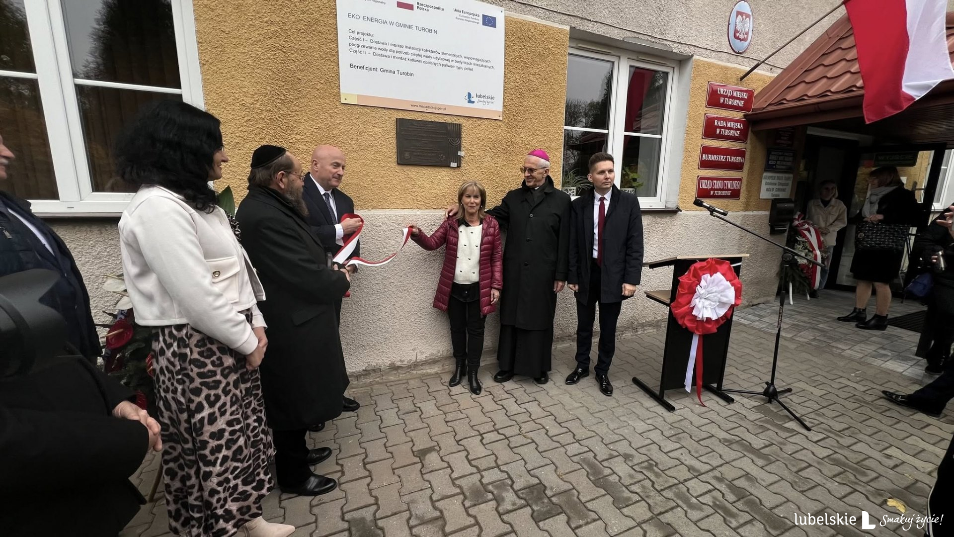 W uroczystości wzięli udział między innymi: Profesor Sabina Bober, Ksiądz Biskup Mieczysław Cisło, Rabin Symcha Keller, Lea Hirsch, której matka pochodziła z Turobina i została uratowana przez sąsiadów, oraz ksiądz proboszcz. Na odsłonięciu obecni byli Żydzi z Izraela, jedna z najstarszych mieszanek miasta, która na tą uroczystość przyleciała z USA, a także przedstawiciele lokalnych władz samorządowych.
