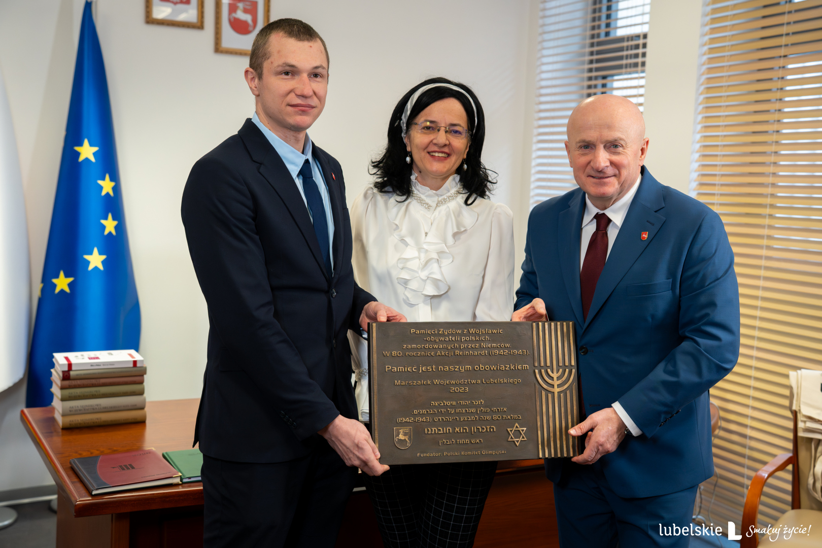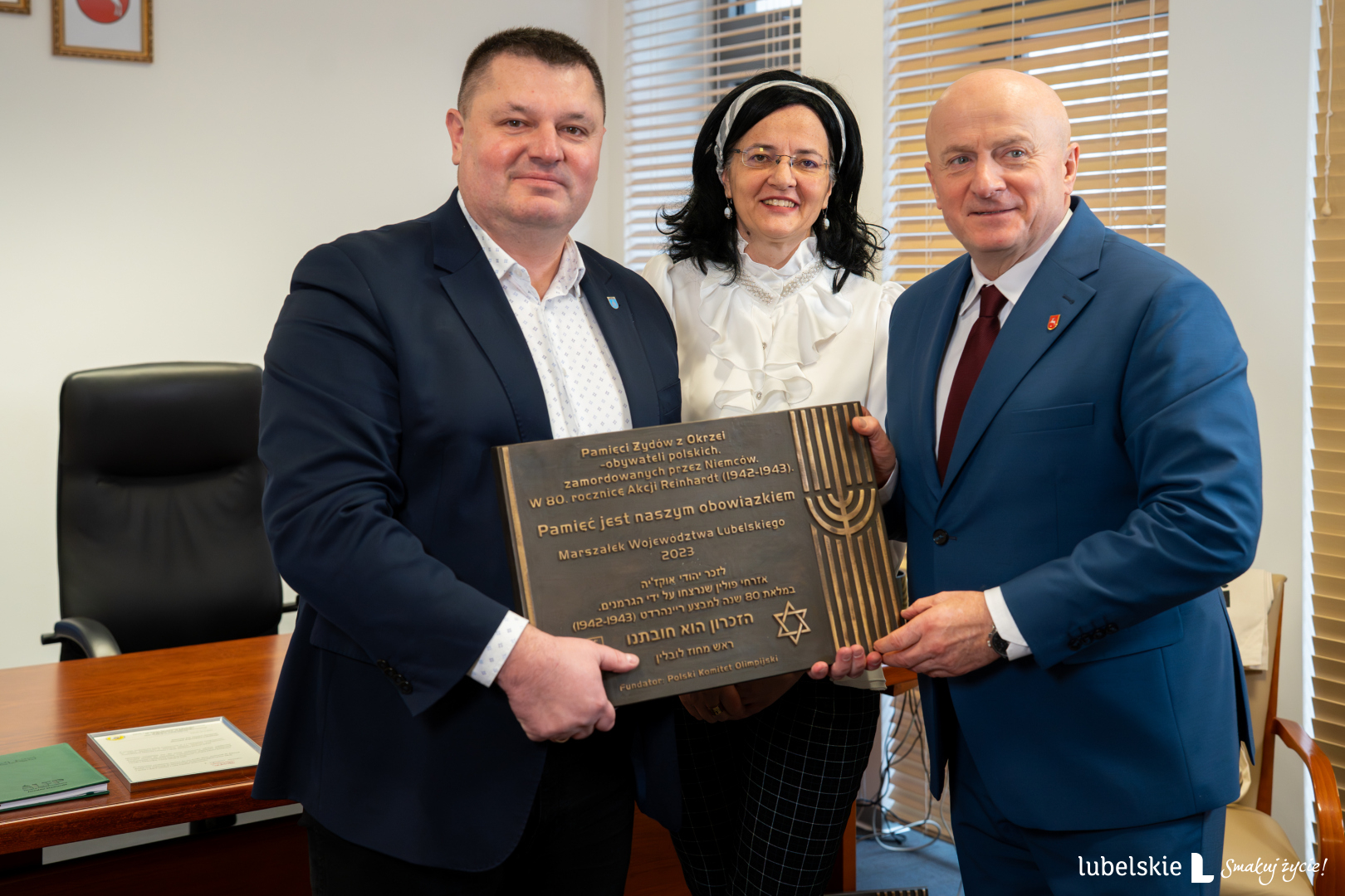 Dnia 7 stycznia 2026 roku, w Urzędzie Marszałkowskim Województwa Lubelskiego, miało miejsce przekazanie kolejnych pięciu tablic ku pamięci społeczności żydowskiej. Marszałek Jarosław Stawiarski wręczył tablice dla miejscowości: Wojsławice, Grabowiec, Okrzeja, Biszcza oraz Celiny. W spotkaniu wzięli udział przedstawiciele gmin: Bartłomiej Szajner – zastępca wójta gminy Wojsławice, Bartosz Popek – wójt gminy Grabowiec, Wojciech Czerniec – wójt gminy Krzywda (Okrzeja), Piotr Cichórz – sekretarz gminy Biszcza oraz Andrzej Hryciuk – wójt gminy Trzebieszów (Celiny).