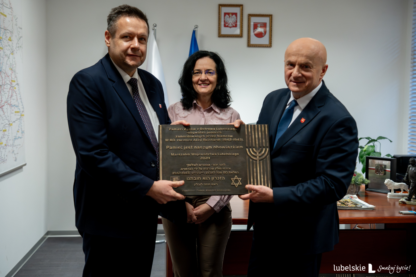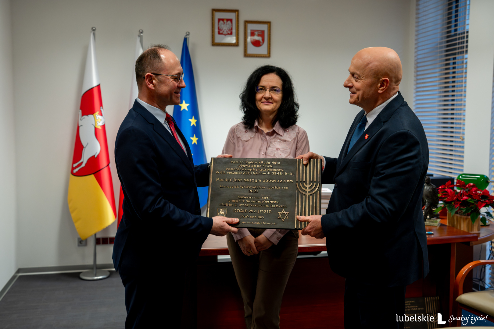 Dnia 15 grudnia 2025 roku, w Urzędzie Marszałkowskim Województwa Lubelskiego, miało miejsce przekazanie kolejnych czterech tablic ku pamięci społeczności żydowskiej. Marszałek Jarosław Stawiarski przekazał tablice dla miejscowości: Szczebrzeszyn, Ruda-Huta, Ostrów Lubelski oraz Tyszowce. W spotkaniu wzięli udział włodarze: Jarosław Walczuk – wójt Rudej-Huty, Robert Bondyra – burmistrz Tyszowiec, Włodzimierz Kołton – burmistrz Ostrowa Lubelskiego oraz Rafał Kowalik – burmistrz Szczebrzeszyna.
